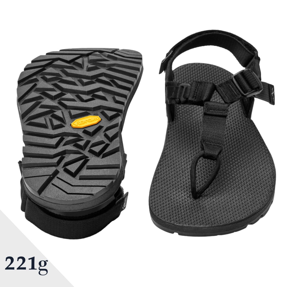 BEDROCK SANDALSのサイジングはソールの幅、長さでサイズを選択します。足のサイズは26.5cmですが、Men"s 8/Women"s 9を選ぶのが適切だと思うのですが、そうするとソールの先端からつま先が出てしまいそうなサイズとなってしまうので、Men"s 9を選ぶようにしましょう。