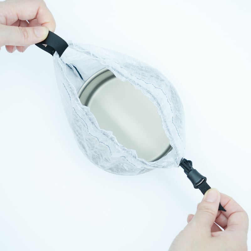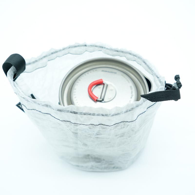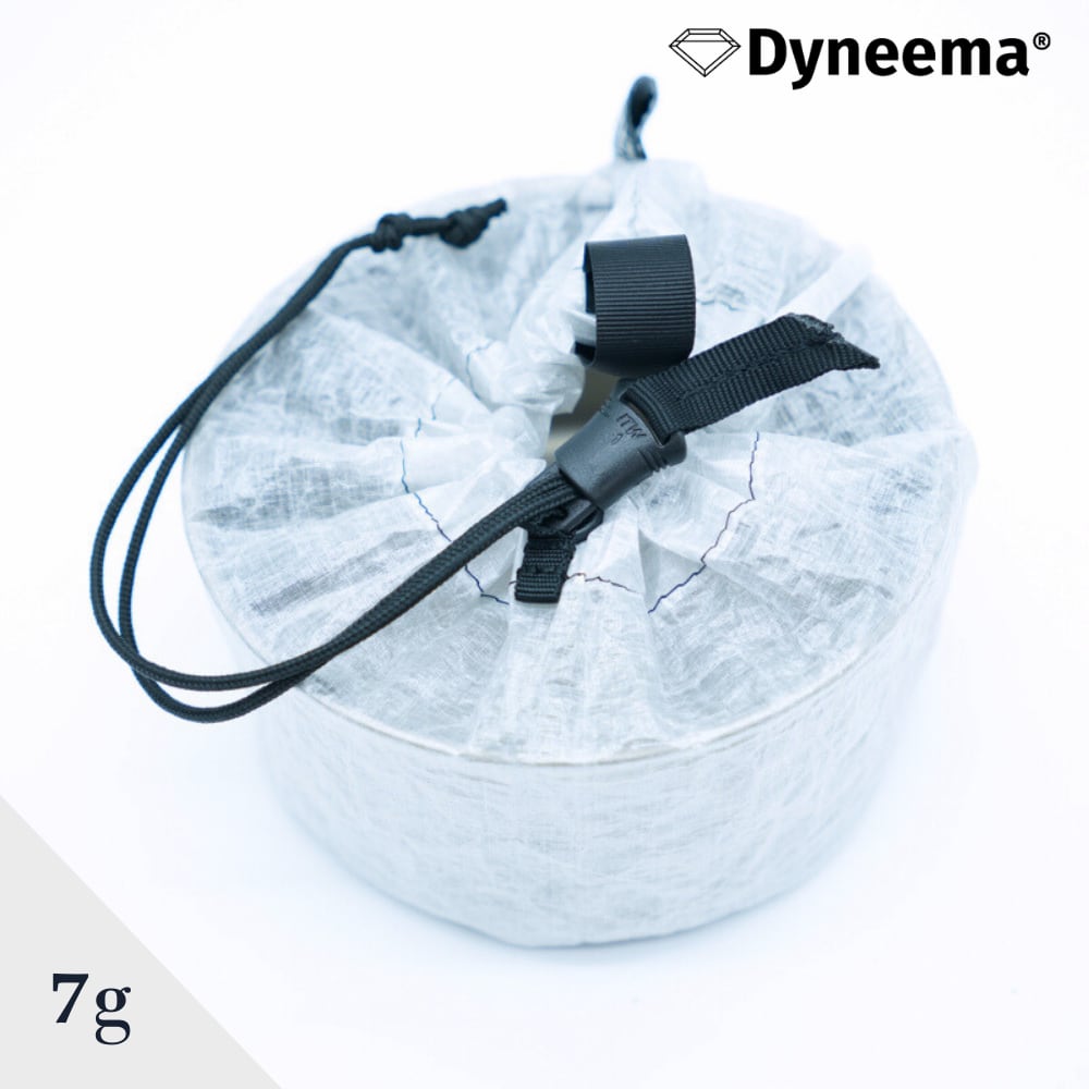 直径12cm高さ10cmまでのクッカーケースとして、ガス缶やストーブやランタンなどの小物類のスタッフバッグとして、ランタンシェードとして、マルチに使用できる円柱形のダイニーマ製ケースです。
