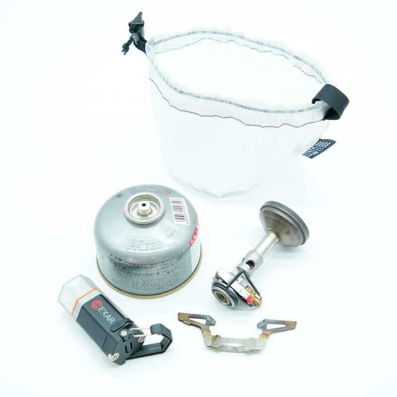110OD缶、LEDランタン、ガスストーブ、五徳、ライターなどの小物用ケースとして活用できます。