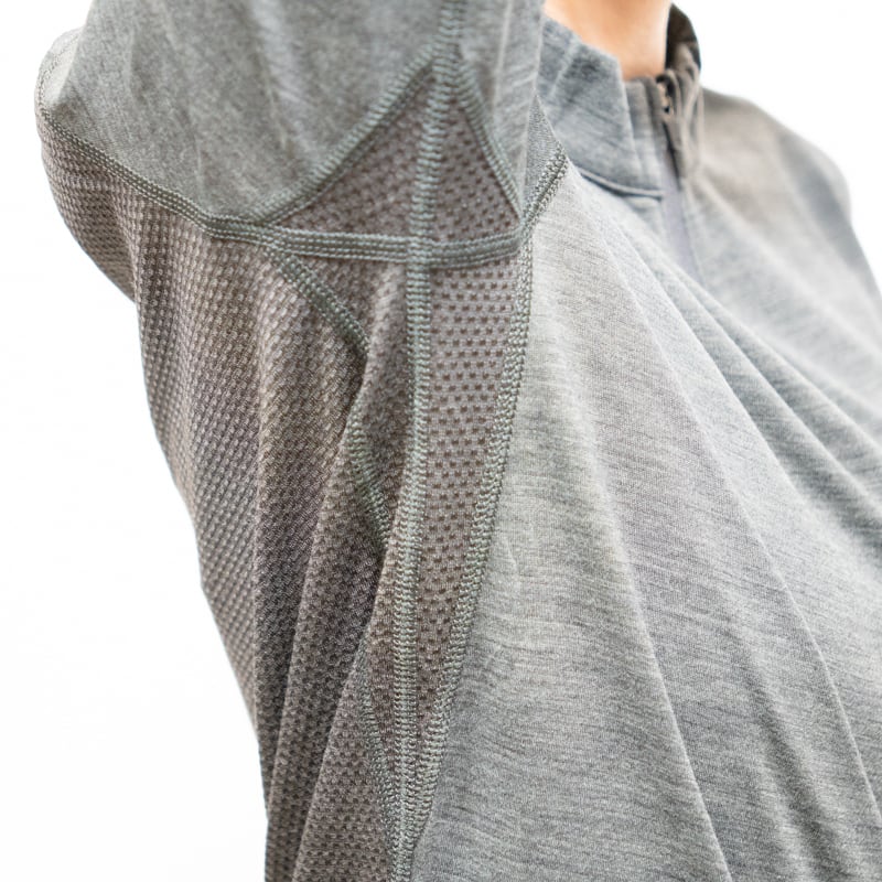 メリノウールが持つ消臭効果と保温性。ポリエステルの速乾性と耐久性を備えているため、登山、トレイルランニングでの使用に適したメリノウールジップアップTシャツです。