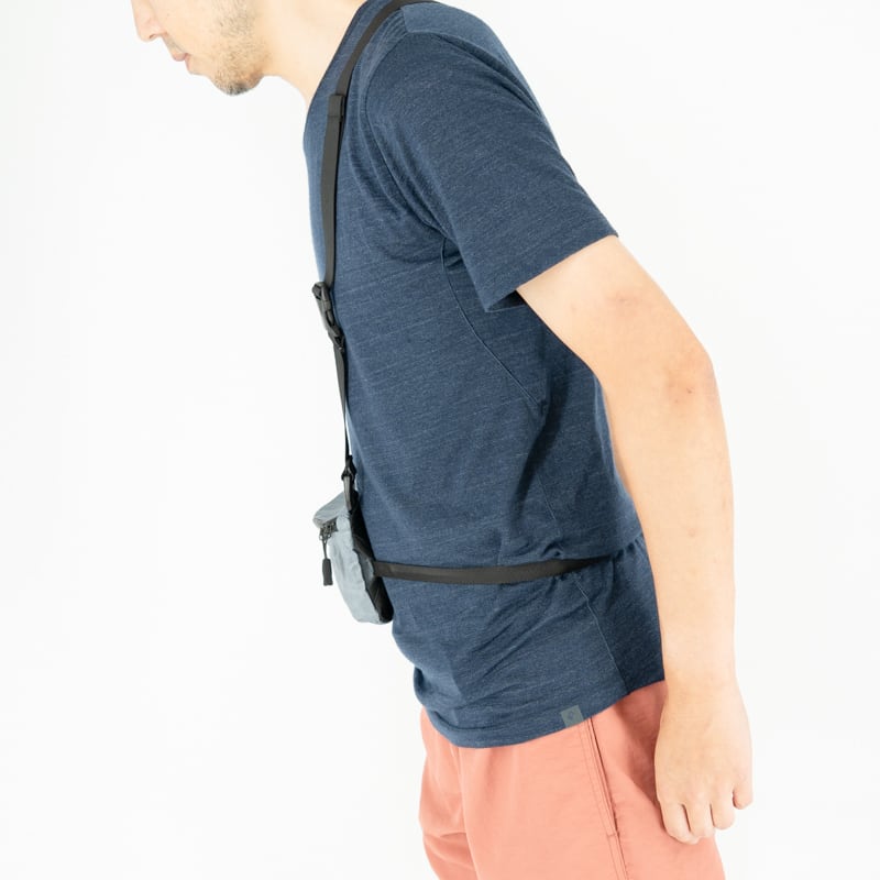 腰に回して装着できるだけでなく、サコッシュを体にしっかり固定できるため、ランニングや自転車ライドなど動きの多いシーンでも安心してお使いいただけます。