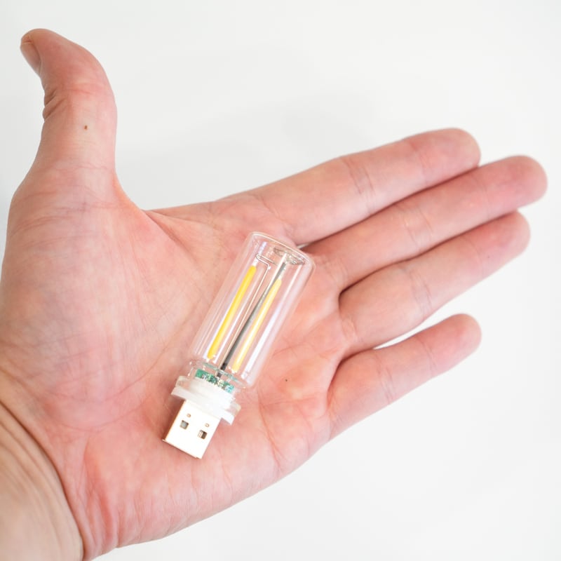 モバイルバッテリなどのUSB端子に差すだけで使えるシンプルでコンパクトなランタンです。