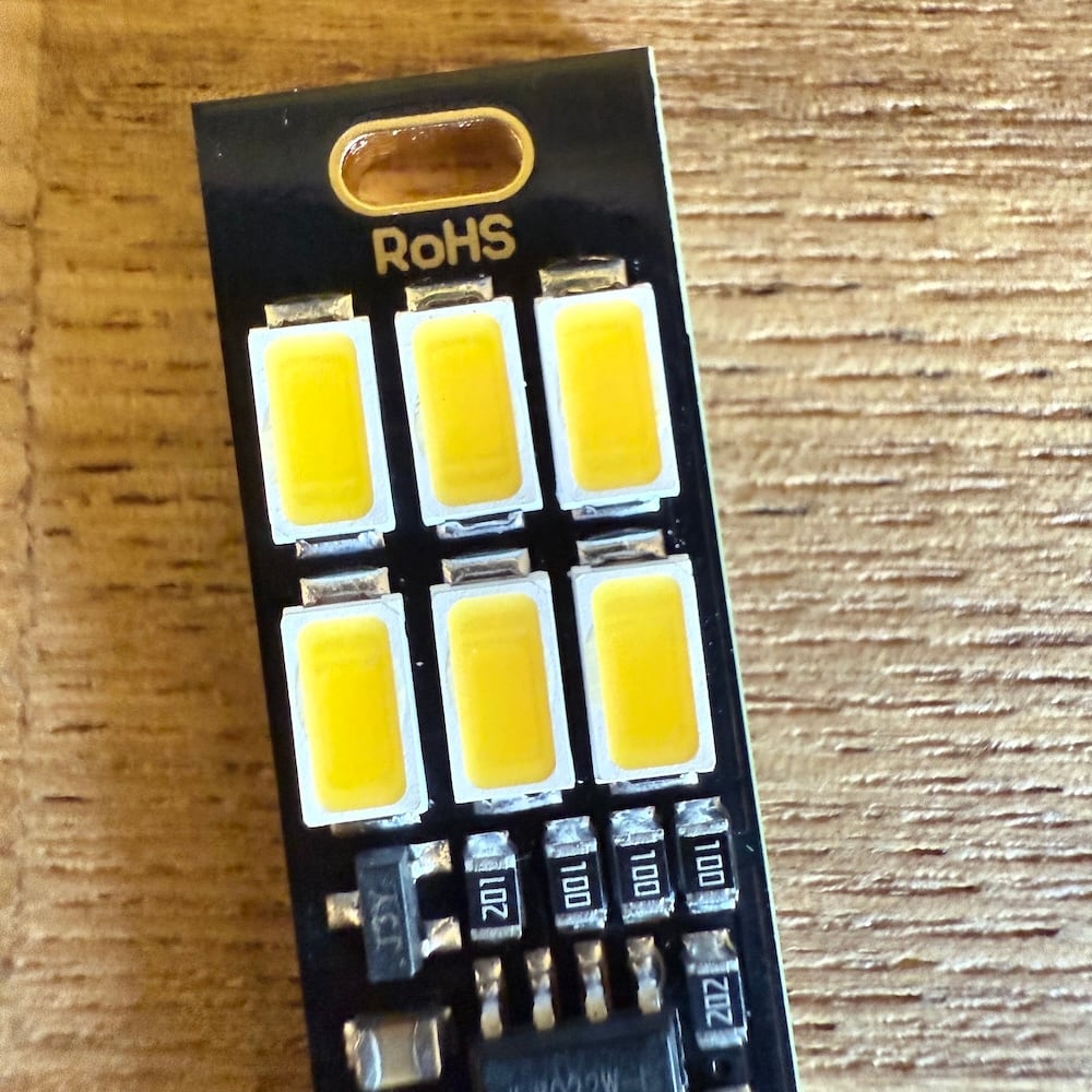 モバイルバッテリなどのUSB端子に差すだけで使える、ケースや部品を全て削ぎ落としたPCBA基板のソケット式のランタンです。ソケットはUSB-A端子ながらもどちら向きでも差し込み可能です。
