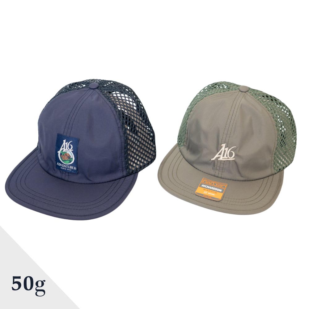ADVENTURE 16のオリジナルキャップ。リップストップポリエステルフロントで軽量かつ耐久性の高いワイドメッシュバックで通気性を確保しています。硬めのツバによって顔を保護します。