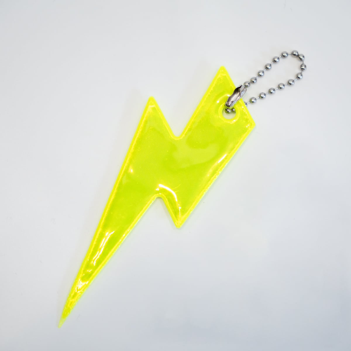 光を受けてピカッと反射する、雷デザインのリフレクターキーリング。