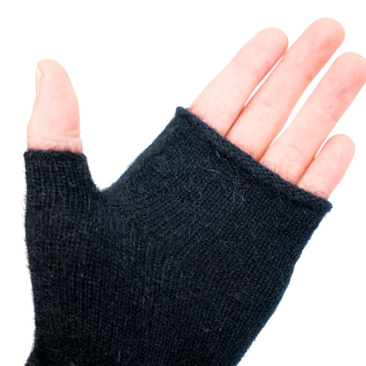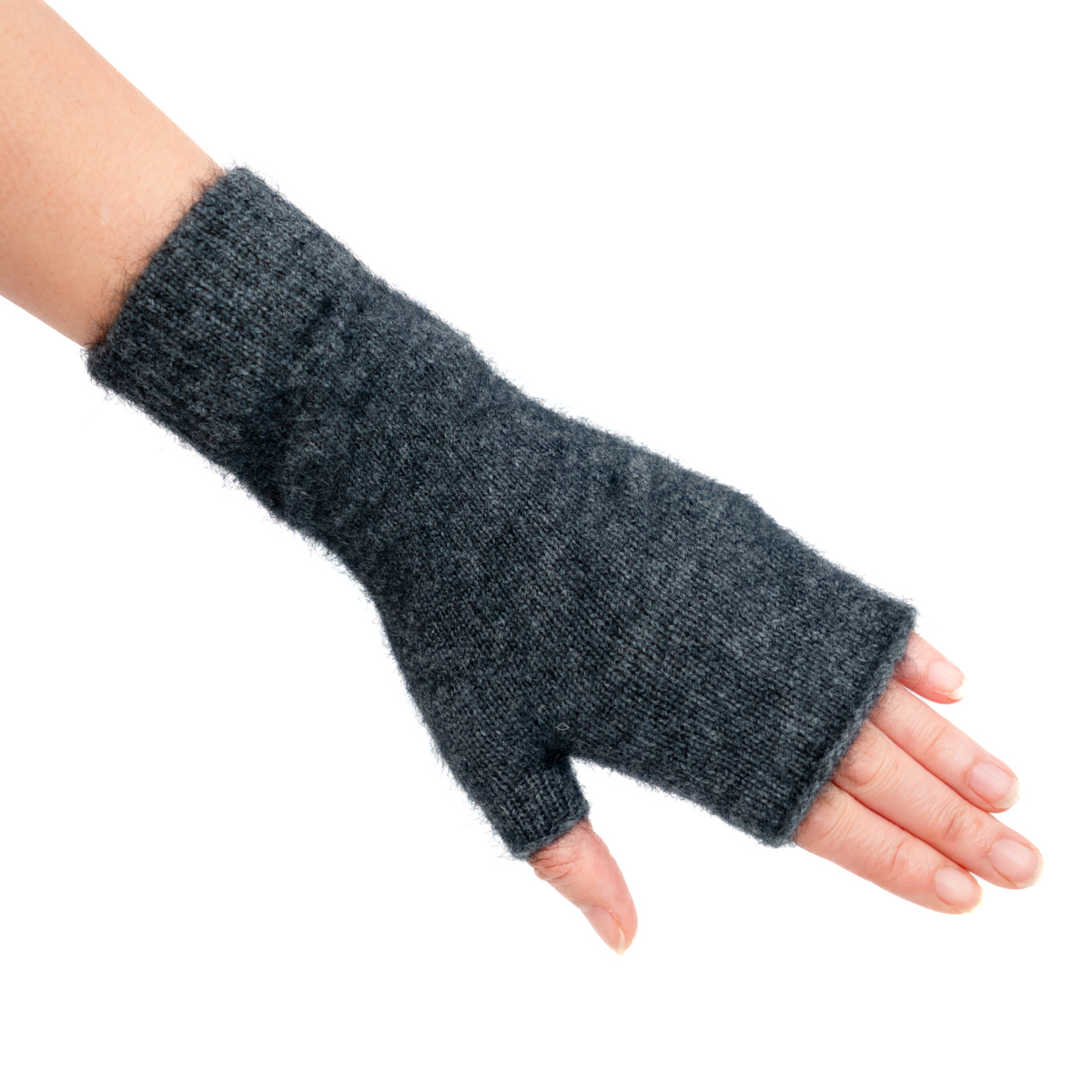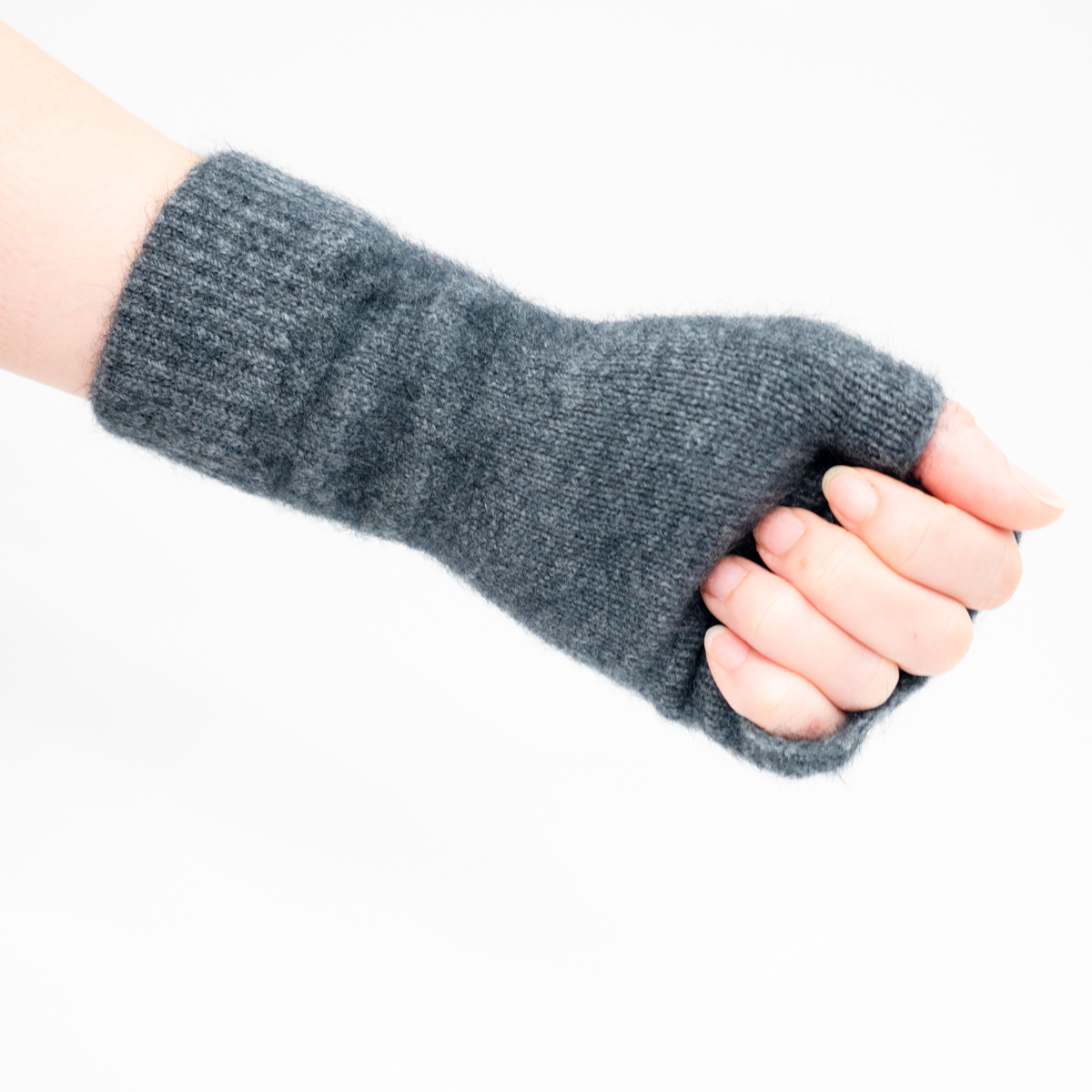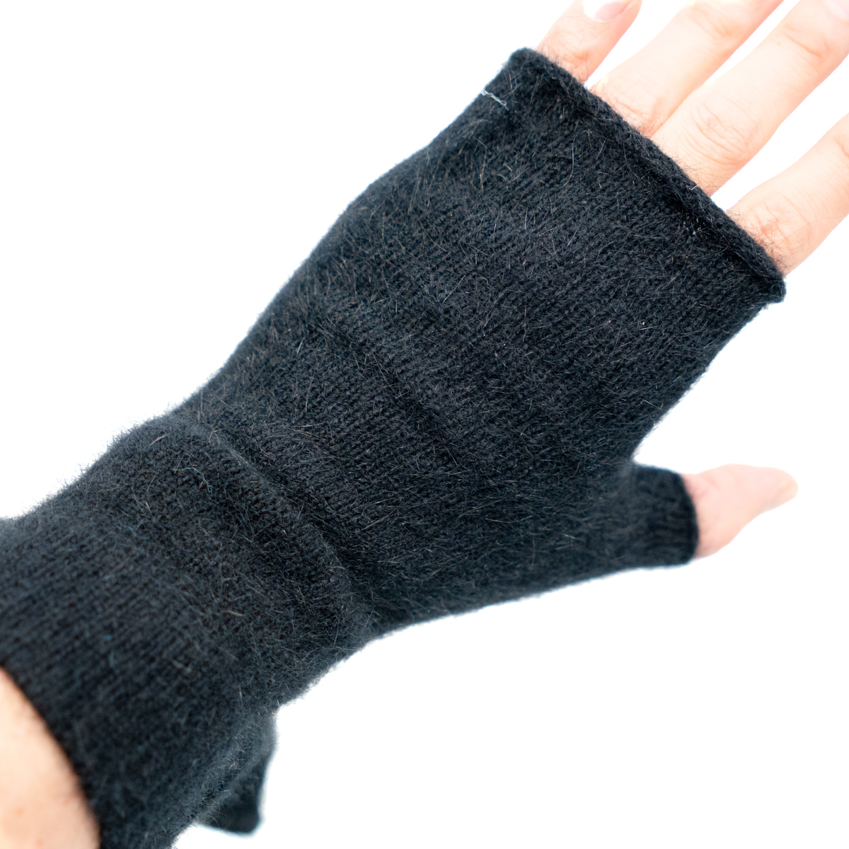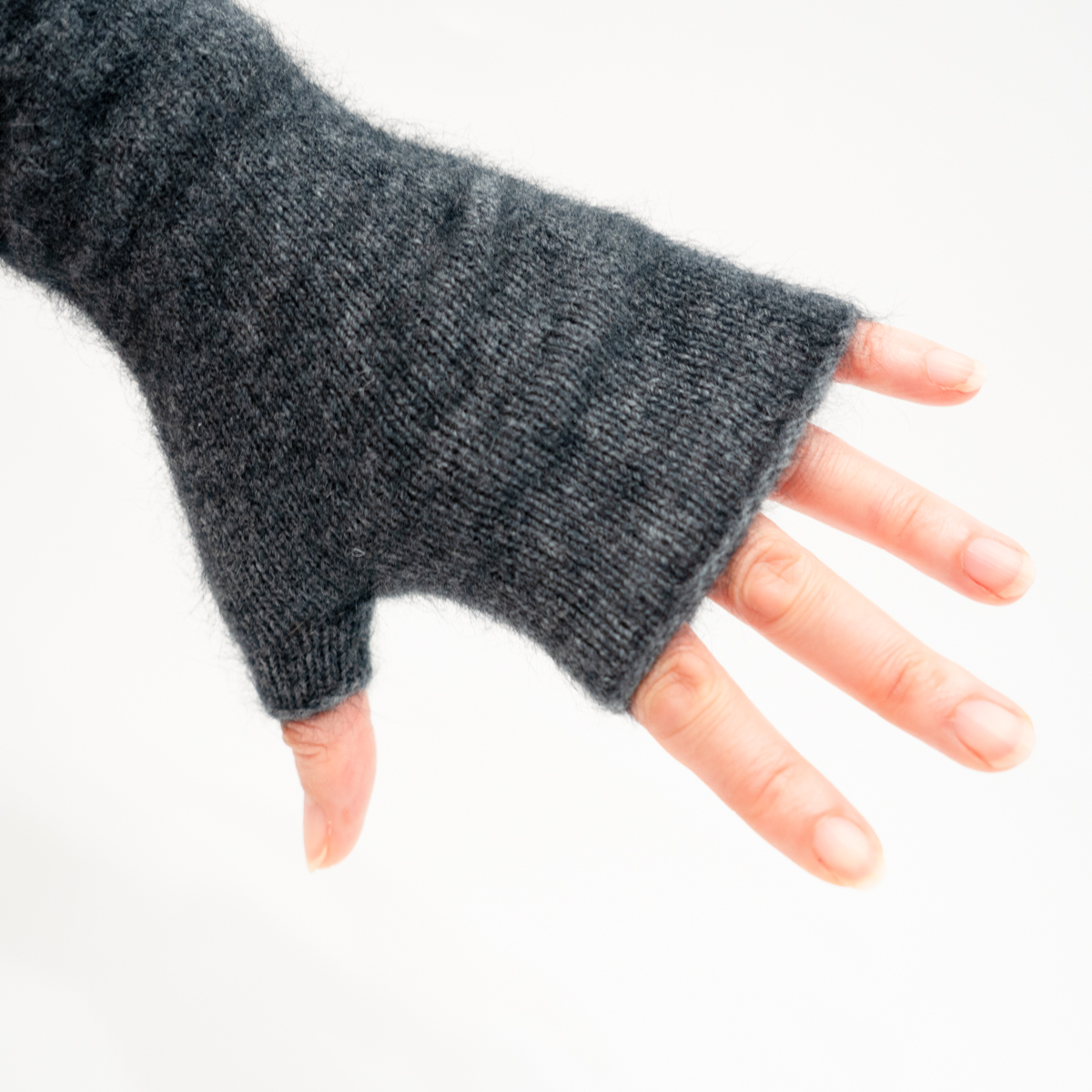 このフィンガーレスミトンは、手首を広く覆うロングデザインが特徴。
