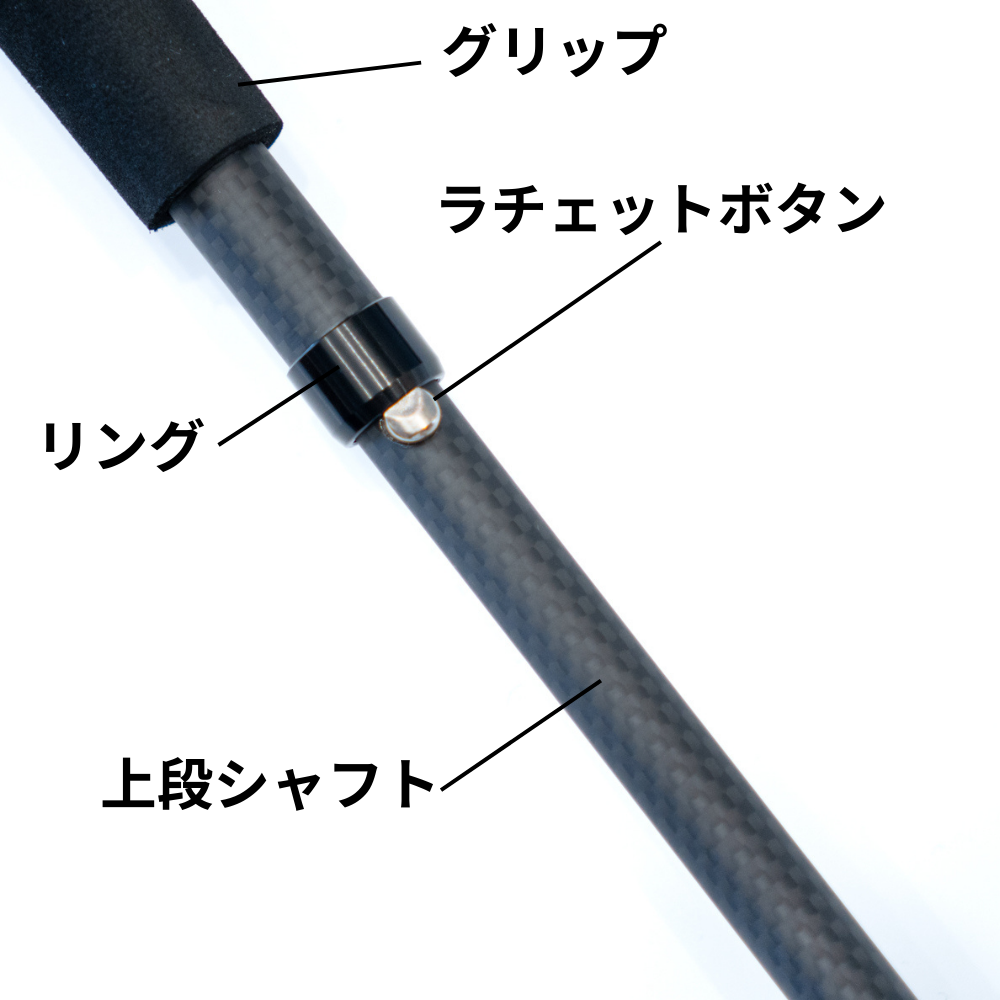 外径12mmの扱いやすい細さで剛性を保つために、1mm厚のカーボンを使用しています。ジョイント部にもカーボンを使用し、軽さにこだわったデザインを採用しています。