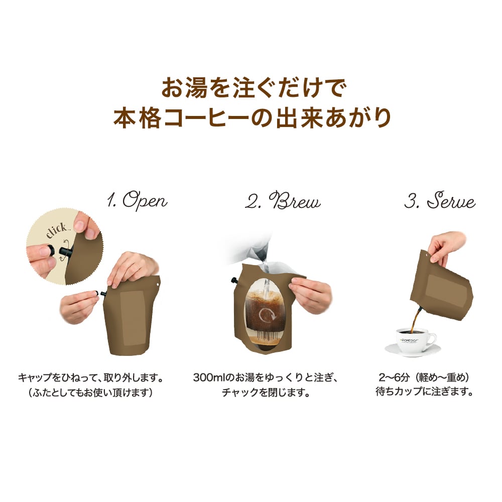 3.2〜6分待つだけで、カップ2杯分の本格コーヒーが完成