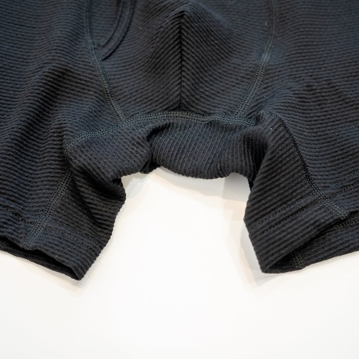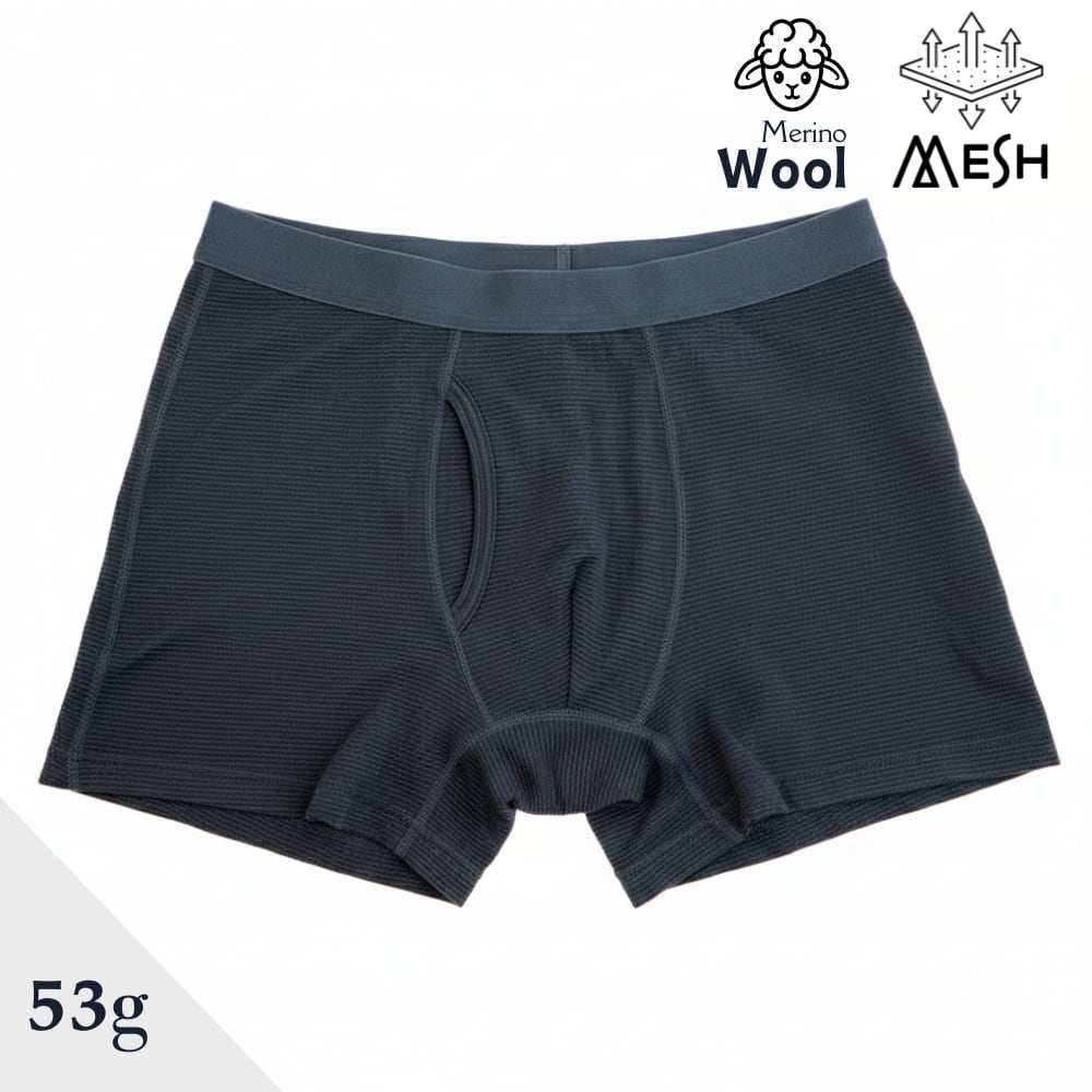 メリノウール47%とナイロン50%の混紡素材で、且つオールメッシュ素材の男性用ボクサーパンツです。ウールの調湿・防臭機能と、ナイロンの速乾・耐久性を高い次元で両立。夏の長距離縦走やトレイルランニング、ファストハイクなど、運動量の多いアクティビティにおいて、常に肌面をドライに保ちます。冬ではお腹や腸に近い部位にメリノウールが配されているため、汗をかいた後も急激な体温低下(汗冷え)を起こしにくいのがメリットです。