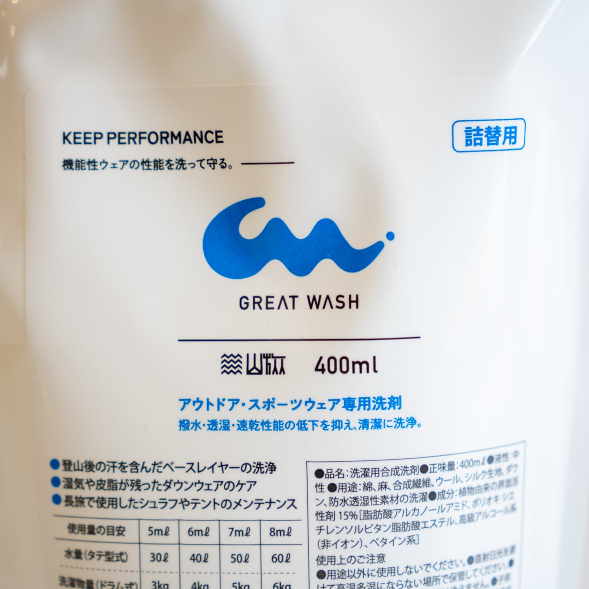 アウトドア洗剤 Great Wash 詰め替え用(登山ウェア洗濯洗剤)