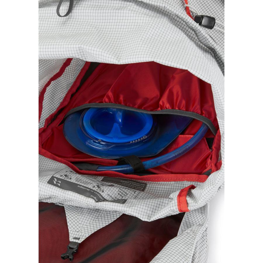 長距離の山行では、日を追うごとに食料が減り、荷物のカサが変わっていきます。Muon 50は、両サイドに1本のコードで広範囲を圧縮できるスマートなコンプレッションストラップを備えており、荷物が減った際もパックのブレを素早く抑えることができます。また、雨蓋(トップリッド)は取り外し可能で、装備の量に応じた柔軟な使い方が可能です。