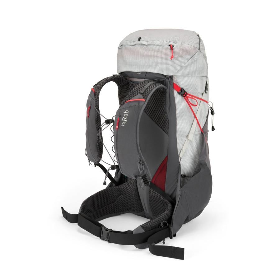 Rabの「Muon 50」は、軽量化と背負い心地を両立させた革新的な機能を備えたバックパックです。50Lという長期山行に対応する容量と軽さを両立させつつ、重い荷物を背負って長時間歩き続けるための「安定した背負い心地」と、フィールドで気を遣わずに済む「堅牢性」を高い次元でまとめています。