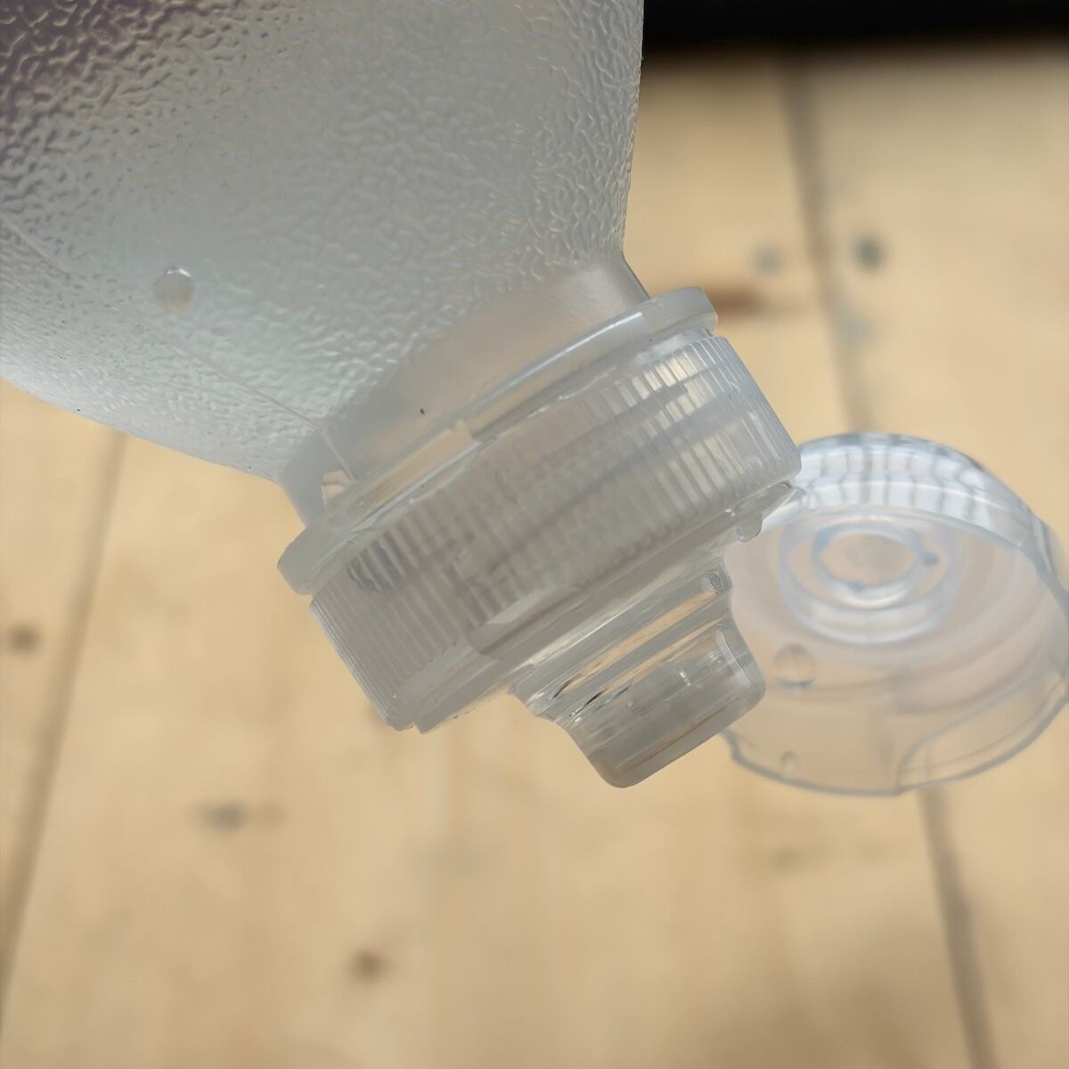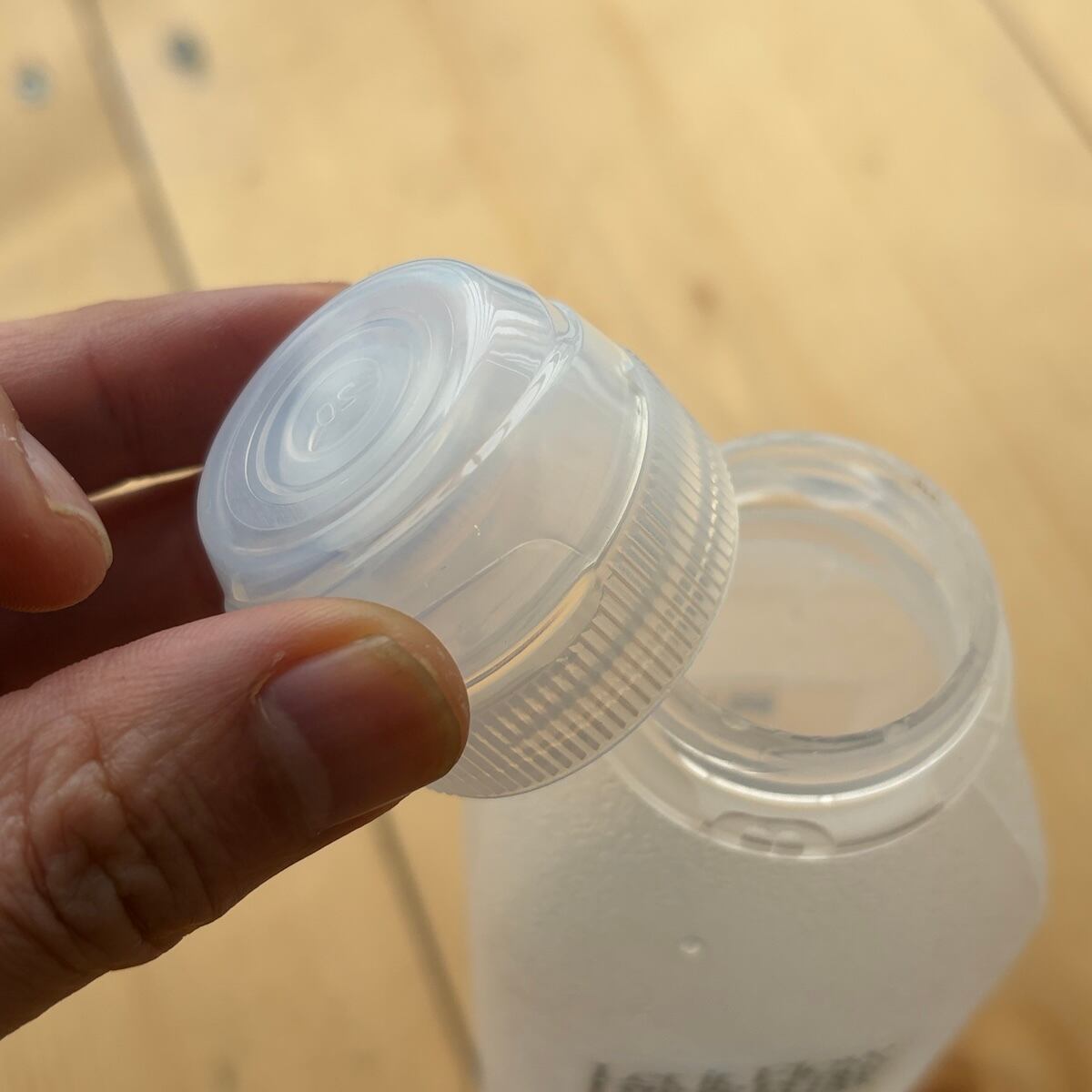 キャップは逆さにしても水が漏れない弁がついており、吸う、もしくはボトルを押すことで水分補給が可能です。
