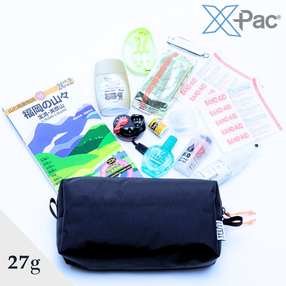 行動食、モバイルバッテリーとコード類、化粧道具、固形燃料とライター、調味料など、濡らしたくない小物類を入れておくのに便利なキューブ状のポーチです。
