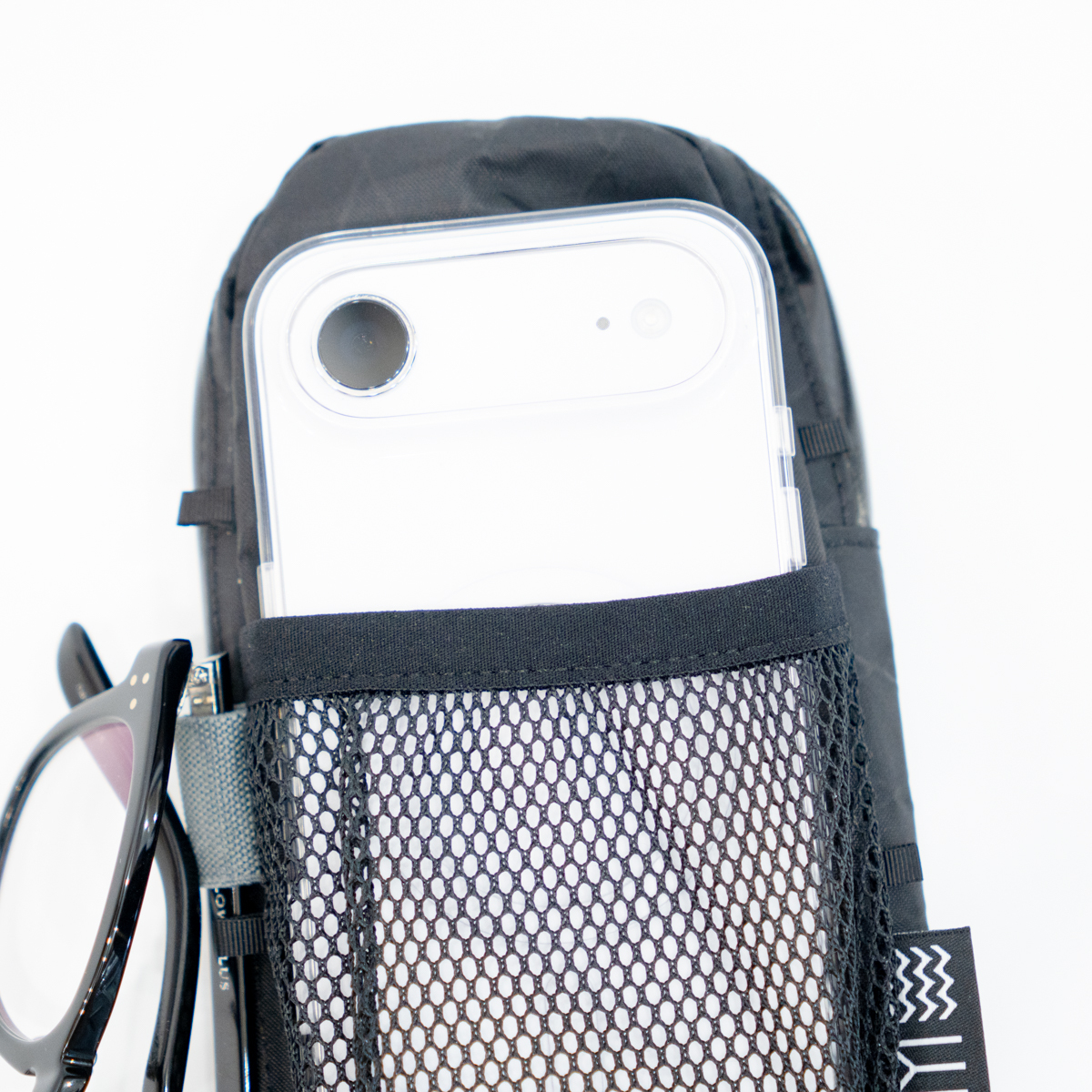 メッシュポケットの左側にあるストレッチ製バンドループにサングラスを固定することができます。