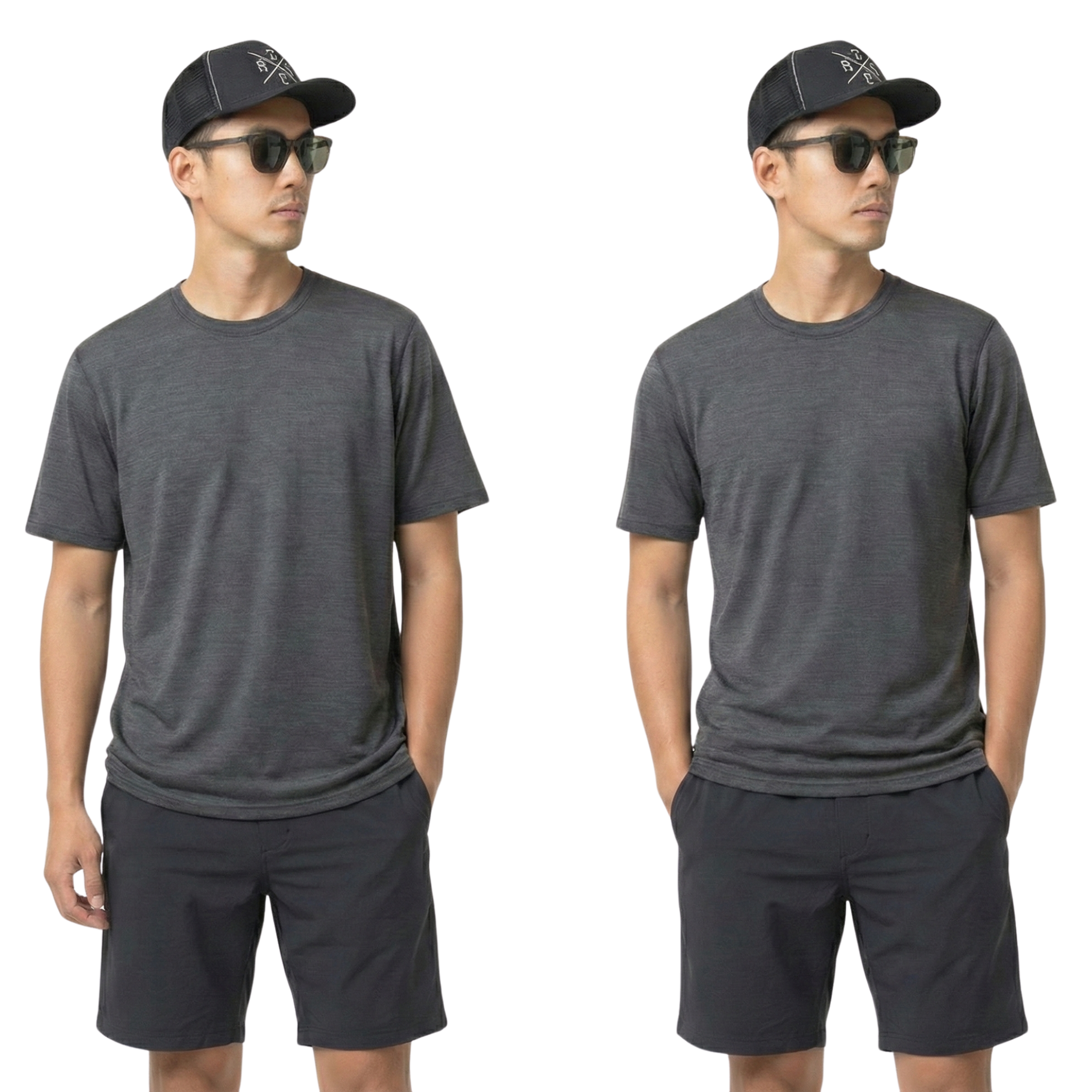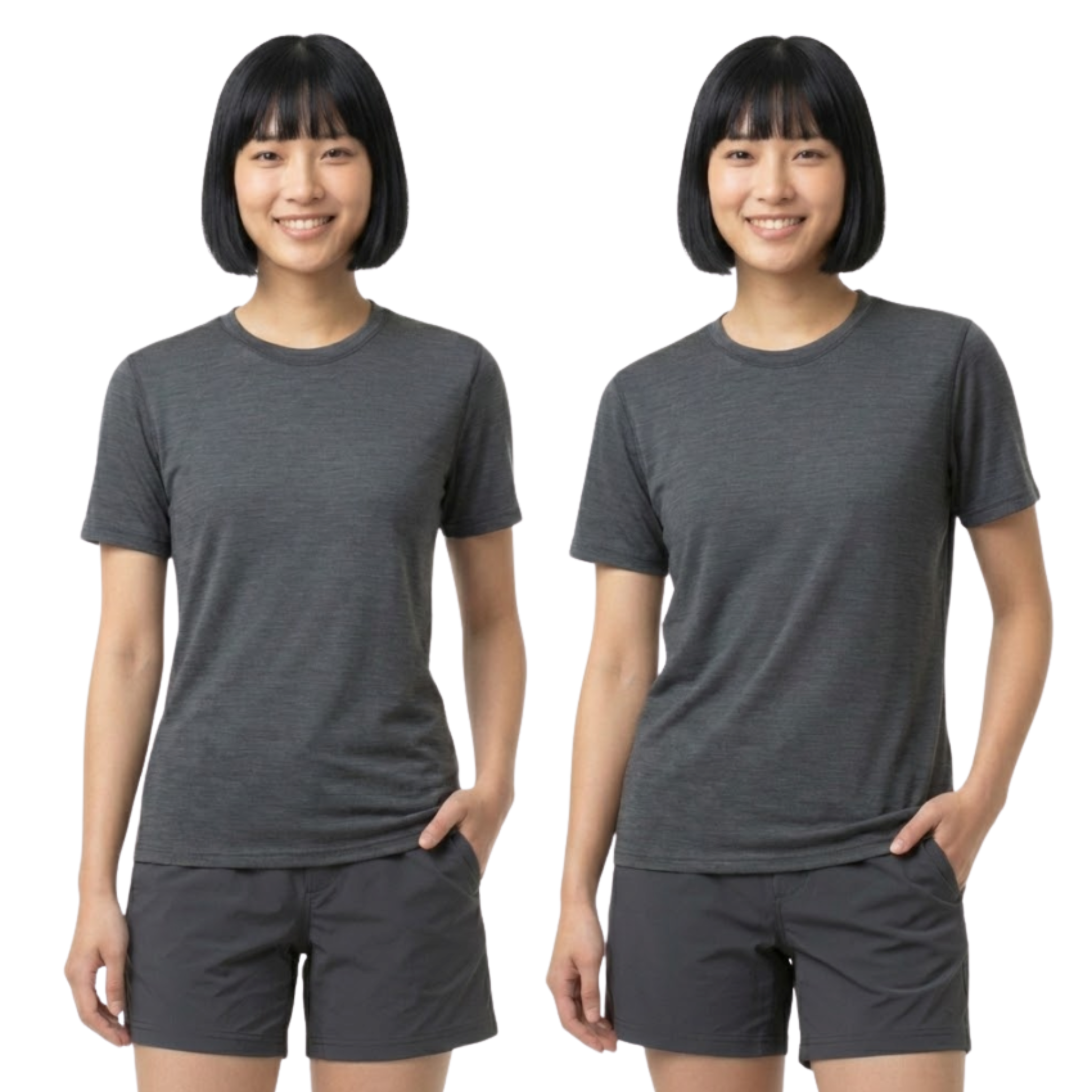速乾メリノウールTシャツはメリノウール50%、ポリエステル50%の混紡比率です。この混紡比率によりメリノウールのさらりとした風合いと吸湿効果、防臭効果、独特な光沢を備え、更にポリエステルの速乾性と耐久性も備えた特徴を備えました。
