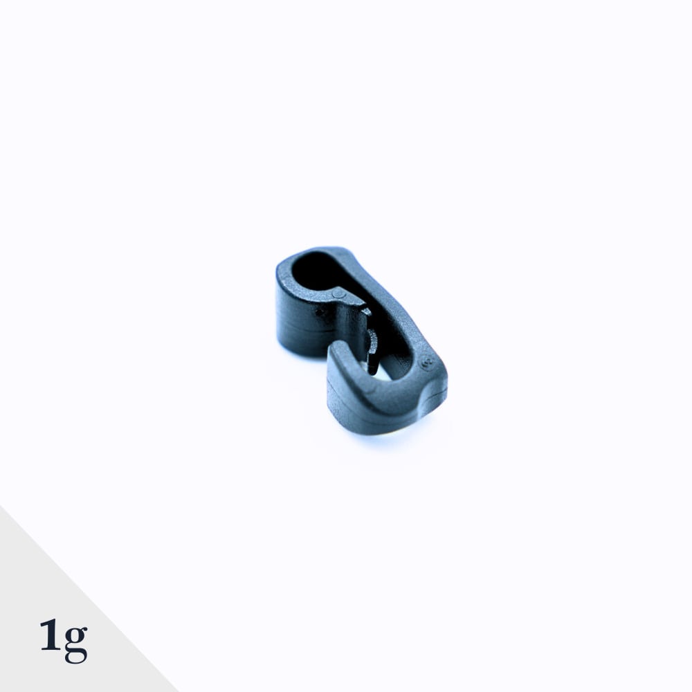 1〜3mmのコードに引っ掛けることができるプラスティック製のクリップフックです。 ザックのバンジーコードに追加してポールやクローズドセルマットの固定システムの追加、テントのガイラインに引っ掛けてウェア類の乾燥、など様々な使い方が可能です。 ※コード類は付属しません。 ◆スペック 重量:約0.76g サイズ:幅8mm×長さ20mm