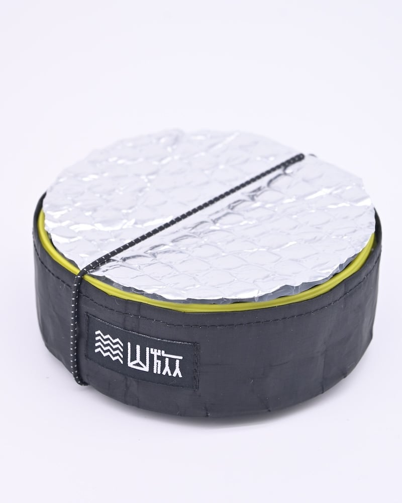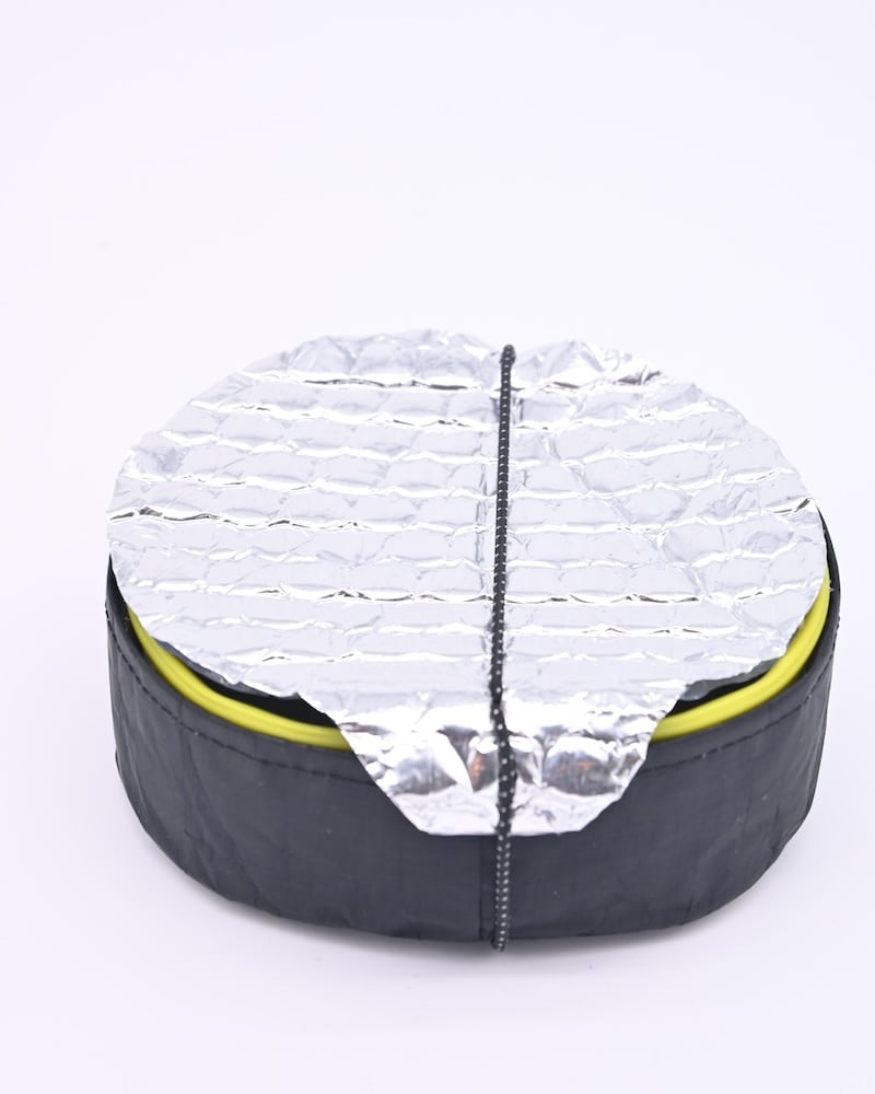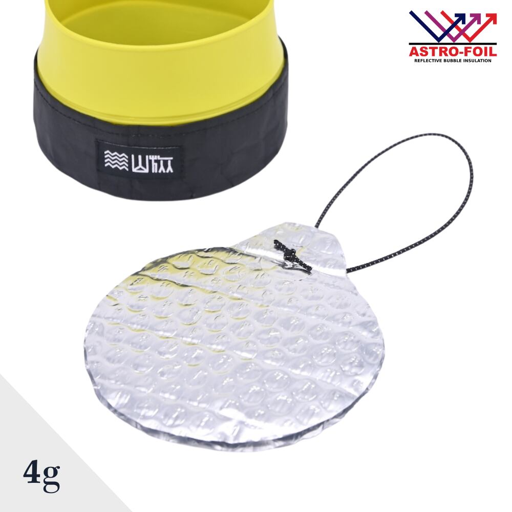 素材のアストロフォイルは、スクリューロックの中に入れた熱源を中に蓄えて保温します。また外気を断熱し冷めづらくなります。