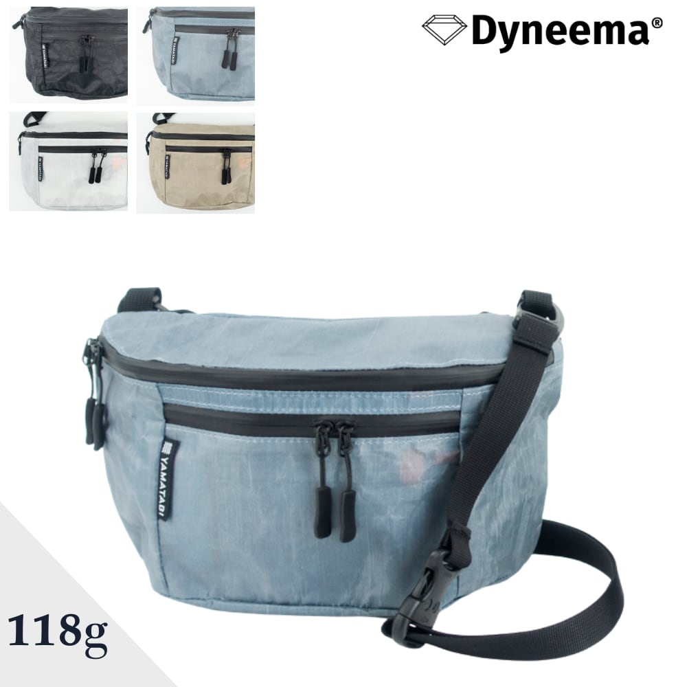 登山から普段使いにおいて細部にまでこだわったダイニーマ製ULサコッシュです。Lサイズは500mlのペットボトルの収納が可能です。その他、頻繁に使用するスマホ、財布、カードケース、紙地図、行動食、ペン、サングラス、リップクリーム、目薬などを出し入れするのに適したデザインです。ポケットは全部で4つ。
