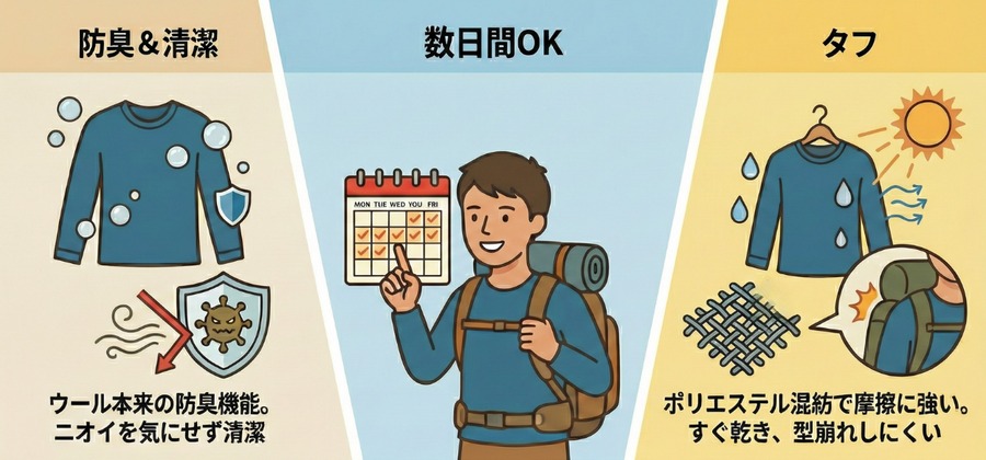 3. 数日間着ても爽やかに、そしてタフに