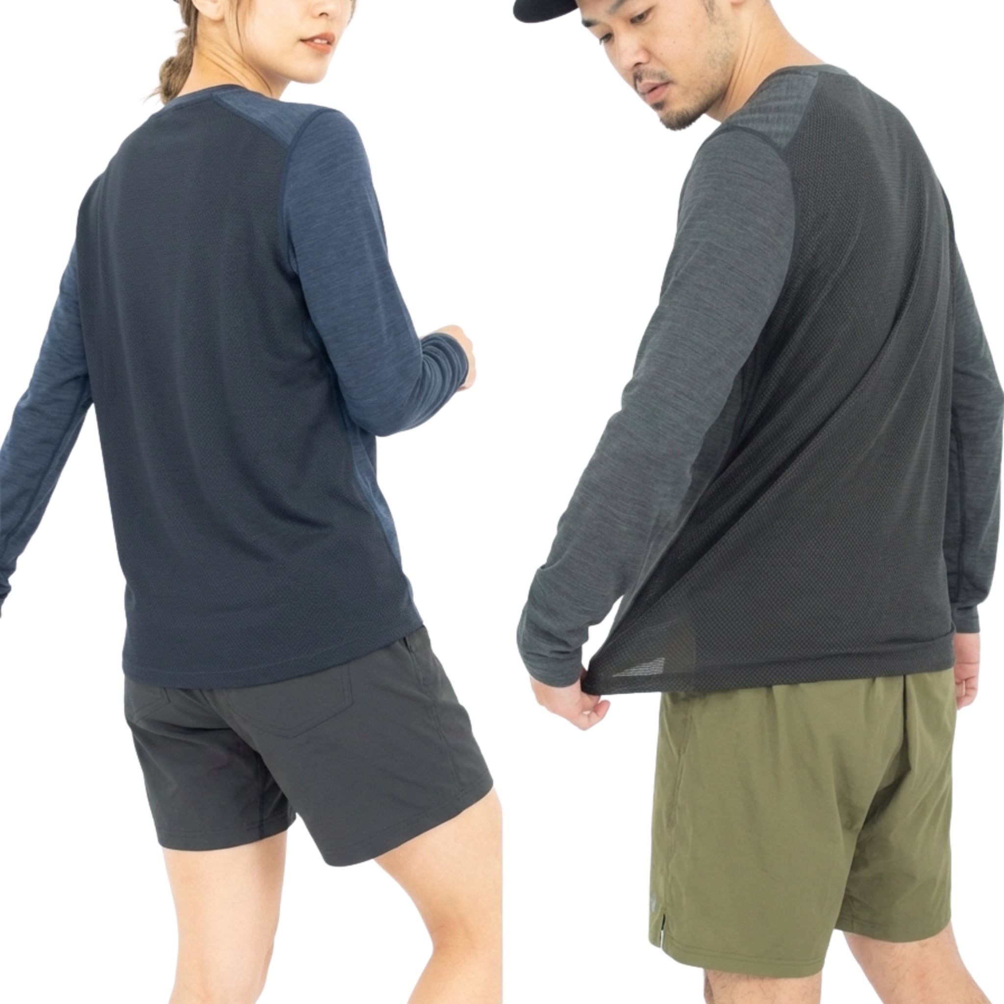 メリノウールのチクチク感がなく着心地の良さを追求したベースレイヤーです。この素材は汗だまりがなく濡れると素早く拡散するため、発汗量が多い人や、トレイルランニングなどのハードなアクティビティ用ロングスリーブ・ベースレイヤーとして最適です。