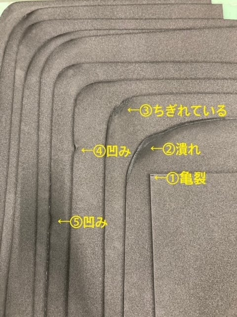 残材のため角の処理について6枚目の写真のように凹み、潰れがあります。また長さ、幅のサイズに若干ムラがあります。