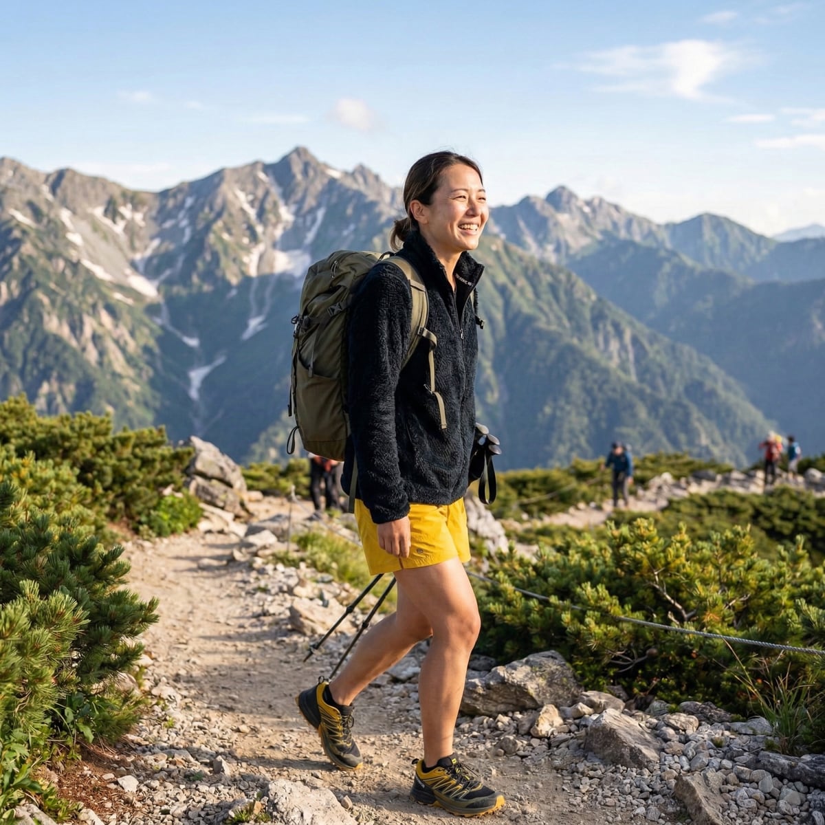 肌寒く感じたらベースレイヤーの上からアルファダイレクト90 ULジャケットを着用することで程よい保温性と通気性で汗をかきづらい行動が可能です。